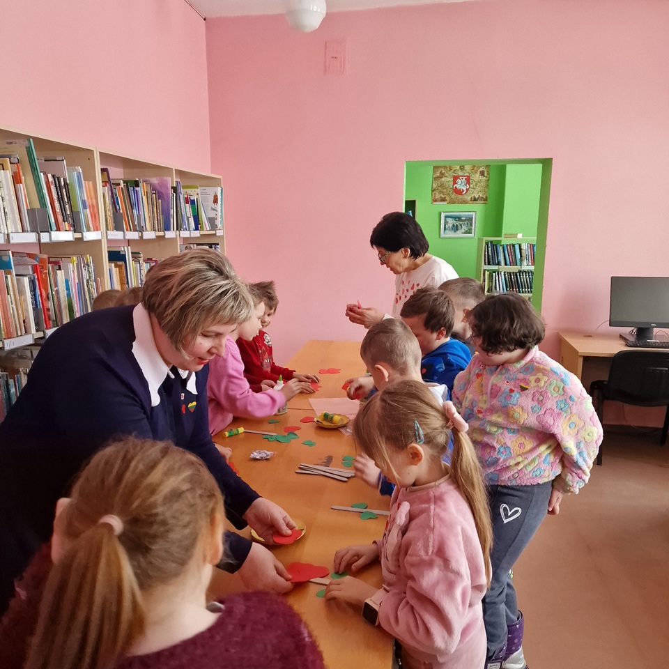 Kadangi ši diena sutapo su Šv. Valentino diena, ta proga mažieji kūrė širdeles su sveikinimais mamoms bei parašė šiltą linkėjimą „Knygų meilės sienelei“. Dabar sienelė spindi vaikų meile knygoms ir širdžių šiluma.