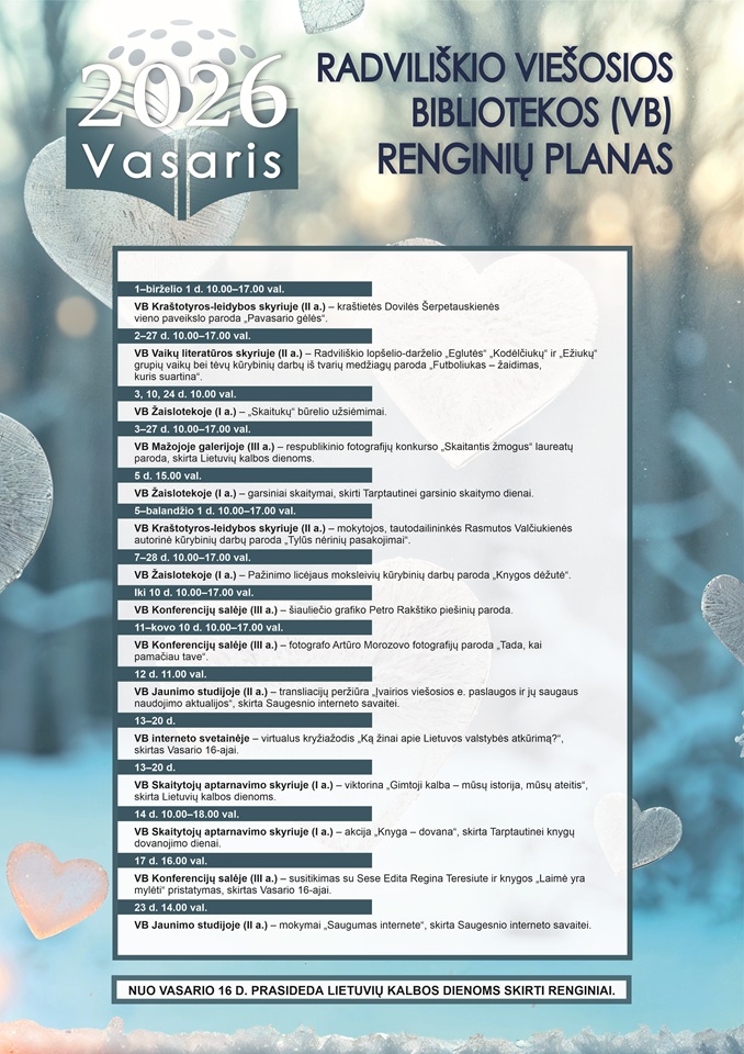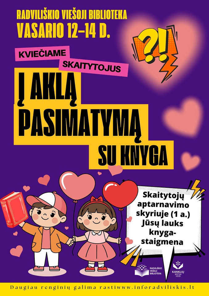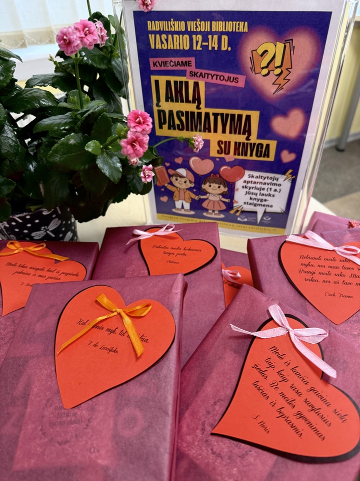 Radviliškio rajono savivaldybės viešosios bibliotekos Skaitytojų aptarnavimo skyriuje vasario 12–14 dienomis vyksta jau tradicija tapusi akcija „Aklas pasimatymas su knyga“. Vasario 14-ąją minima įsimylėjėlių – Švento Valentino – diena. Šiai progai bibliotekoje skaitytojų laukia paruošta knyga-staigmena (knygos išduodamos iš fondo). Akcijoje dalyvaujančios knygos yra supakuotos kartu su maža dovanėle, kuri pradžiugins kiekvieną.