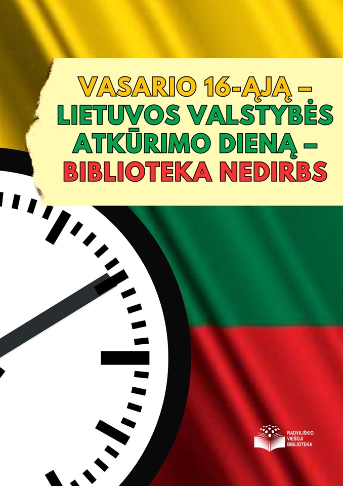 Vasario 16-ąją – Lietuvos valstybės atkūrimo dieną – biblioteka nedirbs